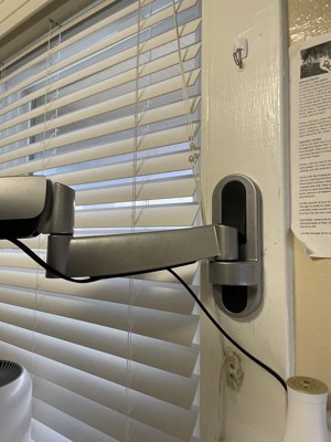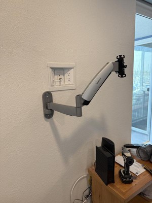 Works great with my 32 inch TV the gas spring arm works smoothly