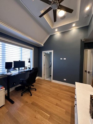 [This review was collected as part of a promotion.] My son works from home a few days a week and his wife does as well. However they only have one work desk at home, so when they are both working from home, my son comes to our house, which is only a few blocks away to work. We had a makeshift arrangement, but just got this adjustable desk. He loves it! He can now work comfortably whether sitting or standing, which he likes to do in order to change positions, instead of sitting in the same position all day. His work is done entirely on his computer set up. He installed 2 screens on brackets that he attached to the desk and he brings his laptop, which offers a 3rd screen. The short "L" is very handy as is the pull out drawer and the clever addition of the shelf under the desk top that neatly stores the power cords and surge protector. I am quite handy and had no problem with assembling the desk, but other people might. It does take 2 people to assembly when it has to be flipped over, since it is quite heavy. Heavy is good however, since it feels very, rock steady. The electrical raising and lowering are so smooth and quiet. The preset height settings are handy for moving the desk top to the user's height. It is also handy since I use the desk as well and prefer a different height than my son does. We have all of these heights programmed into the presets.