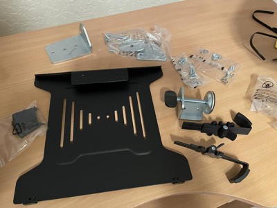 [This review was collected as part of a promotion.] This was a sample to try it out. I set it up in my woodshop and use it for shop plans. I leave the monitor in place and take the lap top with me when not it the shop. It set up quite right out of the box. It has two ways of connecting to desk or work bench. A temporary knob system or a drill a hole and bolt it. Over time we will see how it stands up to the shop conditions.