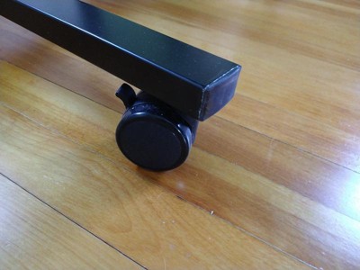 I bought this rolling standing desk about eight months ago and generally I am very happy with its functionality. The desktop is large enough for a laptop and papers and it was easy to assemble. There is one thing I find annoying. There are black rubber stoppers that cap off each of the four legs - and they pop out onto the floor without warning constantly and then become tripping hazards. I did not think this was big problem at first - but this happens so often, if I were to need something similar in the future, I would consider other options. Another point to note, the locking switches on the wheels take very little to lock into place. Not a big deal, but something best to check before trying to move.