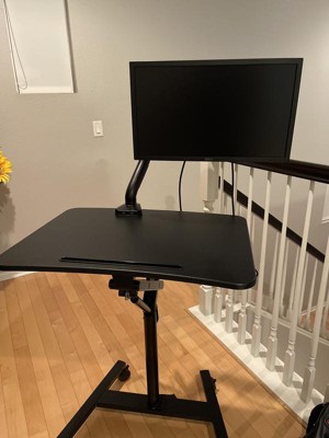 Mount-It! Mobile Standing Laptop Desk | Height Adjustable Rolling Sit Stand Workstation w/ Casters | 27 Wide with Gas Spring Lift Mechanism | Black