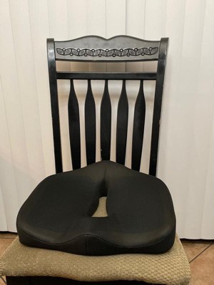 [This review was collected as part of a promotion.] I used this seat cushion for a decent amount of time before reviewing and it was fairly effective in keeping me comfortable through my nursing studies. I chose to use it on my most uncomfortable chair and the difference has been pretty amazing. I noticed a big difference in my spine as I have scoliosis and sitting on hard surface chairs quickly make my spine feel pain. I also appreciate the material because I tend to be a sweaty person and this material didn't cause any sweating or uncomfortableness. I would recommend if you need support!