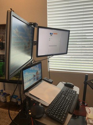 Perfect solution for creating space on my desk. Love abililty to sit, stand, move up/down, L/R.