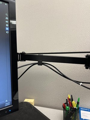 This was a great solution to having two independent monitors standing next to one another. Not only are the two stands gone, but the monitors are raised up, creating additional desk space underneath.