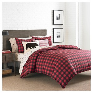Featuring a classic plaid pattern in shades of black and red, this beautiful comforter set adds a touch of rustic, cabin-inspired comfort to your bedroom. The plush cotton material keeps you warm and cozy, and the set is machine washable for easy cleaning. Twin comforter set includes: one twin comforter (86"l x 63"w) and one standard sham (21"l x 27"w), full/queen comforter set includes: one full/queen comforter (92"l x 96"w) and two standard shams (21"l x 27"w), king comforter set includes: one king comforter (96"l x 108"w) and two king shams (21"l x 37"w)