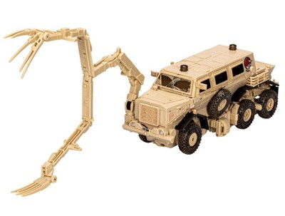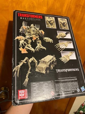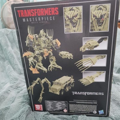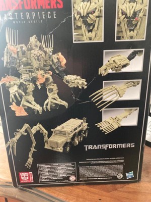 Modeled after the Transformers live action movies, this Movie Masterpiece Bonecrusher action figure features film-inspired details and accessories, ideal for displaying on collectorsrsquo shelves. This authentic Transformers collectible figure was inspired by the CAD files from the first live action Transformers movie and includes die cast parts, over 180 deco ops, and more than 50 points of articulation. This Bonecrusher figure features specs and details inspired by the characterrsquos appearance in the first live action Transformers movie and includes an alternate face, alternate claws, and 6 blast effects. Bonecrusher figure converts between movie-accurate robot and mine-protected vehicle modes in 84 steps and features articulated arms, legs, waist, head, and mine fork. Look for more Movie Masterpiece figures to reimagine iconic scenes from Transformers films.