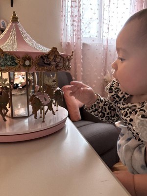 Our granddaughter Paulina is absolutely mesmerized by the beautiful carousel we purchased for her very 1st Christmas