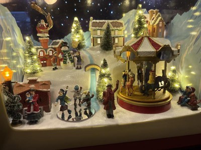 - Animated scene featuring a rotating sleigh, carousel, and skaters