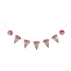 Rediscover the magic of yesteryears with the Vintage Merry Banner by Mr. Christmas. This exquisite piece captures the essence of nostalgia and spreads joy throughout your holiday décor with its charming design and vintage Santa Claus artwork. Crafted from cardboard, this banner boasts exceptional quality and attention to detail. The pennants elegantly spell out the word "Merry," framed by delightful vintage Santa Claus artwork that evokes heartwarming memories of Christmases past. Measuring 72" long, this banner is the perfect size to become the focal point of your indoor holiday display. The included red ribbon allows for effortless hanging, ensuring that this vintage-inspired masterpiece can be proudly showcased in your home. Please note, this banner is designed exclusively for indoor use, making it a captivating addition to your living room, fireplace mantel, or any cherished interior space. Embrace the spirit of the season and create lasting memories with the enchanting Vintage Merry Banner.