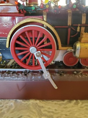 All aboard The Santa's Express from Mr. Christmas. This highly detailed heirloom-quality gift measures approximately 16.75" long and if filled with animation, lights, and music. Watch the wheels turn as Santa, his reindeer, and the elves help move the train along with their animated antics. An LED light string illuminates the train, and real smoke blows out of the smokestack with the included liquid dropper. This locomotive plays 20 Christmas carols and classic railroad songs that bring the whimsical scene to life. Built-in volume control allows you to enjoy with or without music, and AC adapter operation makes for easy setup.