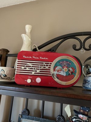 Get ready to hear your favorite song on The Retro Radio by Mr. Christmas. Turn the dial on this 10.5" vintage-inspired radio and enjoy Holiday tunes by the original artists. Listen to 9 classic Christmas carols such as "Deck the Halls" by Smokey Robinson, "Jingle Bells" by Bing Crosby and The Andrew Sisters, and "Up on the Housetop" by The Jackson 5. This battery-operated working radio also plays three pre-programmed radio stations, the Elf News Network, Santa Radio Network, and a music station. So turn up the volume and enjoy the sounds of the Season!