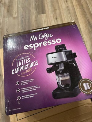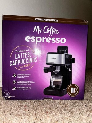 Mr. Coffee Steam Espresso Maker with Stainless Steel Frothing Pitcher: 900W Electric, 8-Cup Capacity, Black