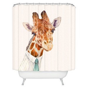 Mr. Giraffe Shower Curtain ivory - Deny Designs: Polyester Microfiber, Machine Washable, Buttonhole Top