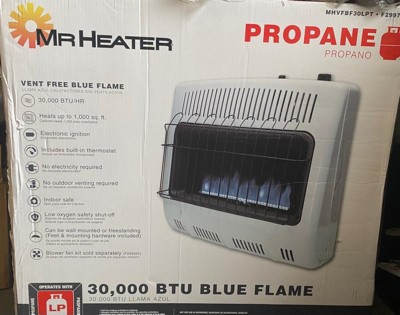Mr Heater 30000 BTU Vent Free Blue Flame Propane Gas Wall or Floor Indoor Heater with Thermostat for Spaces up to 750 Square Feet