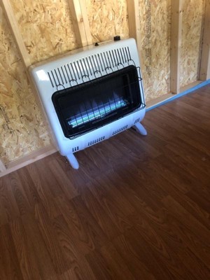 [This review was collected as part of a promotion.] This propane heater was easy to install once we obtained all the necessary fittings. We just purchased a 12x24 double lofted shed to be used as my she shed as my yarn studio. We placed the heater on the back wall at the center point. It didn’t take long for this little heater to take the chill out of the air. I will eventually put up ceiling fans to help circulate the hot air to evenly warm the whole shed. This was perfect for my little creating room. So easy to light and adjust the temperature.
