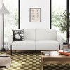 - MODERN INDUSTRIAL CLASSIC: Two slender, front inlay black metal legs contribute to the upholstered sofa's contemporary look. This stylish and comfortable piece is the perfect blend of design and durability for your decor, snugly seating family and friends