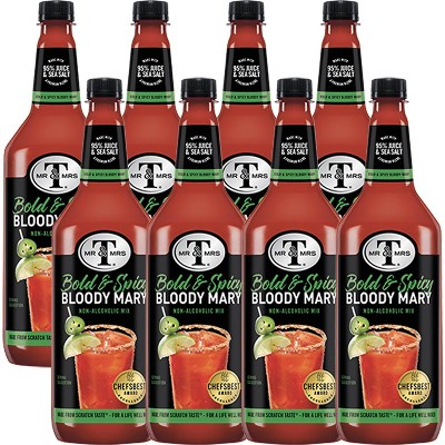 Mr & Mrs T Original Bloody Mary Mix, 1L Bottle, 8 Pack – Premium Cocktail Mixer for Spicy Bloody Marys, Ready to Use