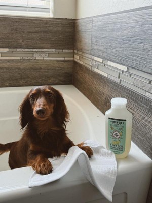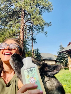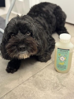 Mrs. Meyer’s Clean Day, now for your pets. Our new pet grooming products keep your four-legged friends happy and clean (while taming their smells and stinks). Gentle yet effective, this shampoo cleanses, conditions, and deodorizes your dog’s skin and coat, while leaving a soft scent behind. Because all dogs deserve a little paws and relaxation.