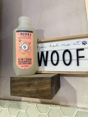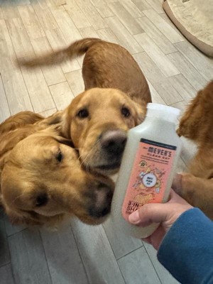 Mrs. Meyer’s Clean Day, now for your pets. Our new pet grooming products keep your four-legged friends happy and clean (while taming their smells and stinks). Gentle yet effective, this shampoo cleanses, conditions, and deodorizes your dog’s skin and coat, while leaving a soft scent behind. Because all dogs deserve a little paws and relaxation.