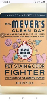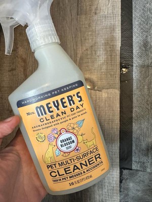 [This review was collected as part of a promotion.] I recently tried the Mrs. Meyer's Pet Multi-Surface Cleaner in the Orange Blossom scent, and I'm really impressed! I have a cat who occasionally coughs up hairballs on both the floor and carpet, and this cleaner has made those messes so much easier to deal with. It cuts through the mess quickly and leaves behind a fresh, pleasant scent without being overwhelming. I also used it to clean her food bowl mat, which tends to get grimy over time, and it worked perfectly. I love that it’s made with gentle, non-toxic ingredients—no harsh chemicals, which gives me peace of mind when using it around my pet. The packaging is also a plus—it's lightweight and easy to hold, which makes cleaning quicker and more convenient. Overall, I'm very happy with this product. I’ll definitely be buying it again, and I highly recommend it to other pet owners looking for an effective and pet-safe cleaner!