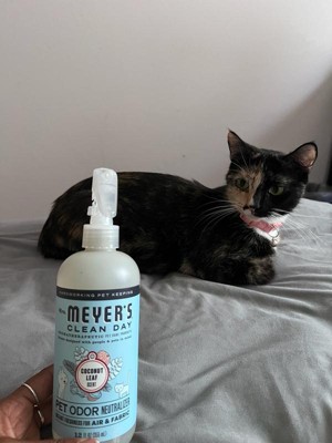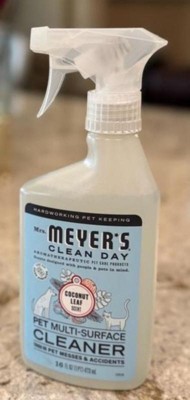 [This review was collected as part of a promotion.] I love my Mrs.Meyer’s Clean Day Coconut Leaf Pet Stain & Odor Fighter. It really helps completely remove stains and odors from any of my pets accidents. The bottle spout sprays easily and the coconut scent is pleasant. I like that the bottle is reusable and that you can recycle it when it is all finished if you’d like. To use this product, I blotted the accident from my pet up, shook the bottle really well, sprayed where my pet had their accident to cover it completely, wiped it up with a few paper towels, and then I redid the entire process if it was needed. This product works great on several different types of surfaces as well. After using this product my floors looked as good as new again. This product is a pretty good value for the price. I highly recommend this product to any pet parents that are looking for a spray that will actually eliminate odors and stains from your pets accidents. This product really does work.