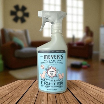 Mrs. Meyer’s Clean Day for your pets. Our new Stain & Odor Fighter is tough on pet messes and accidents but friendly on whiskers and paws. With scents designed with people and pets in mind, this hardworking product fights pet stains and odors for up to 7 days with the power of probiotics for all your soft surfaces—from carpets, rugs and couches to bedding, upholstery, and clothing. Because everybody (especially our pets!) oops sometimes.