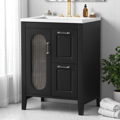 - Ceramic Sink with Overflow: The ceramic sink has a smooth, waterproof finish that resists stains. A pre-drilled hole fits a single-hole faucet (not included), and the metal-ring overflow prevents accidental water spills.