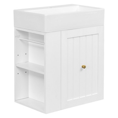 Mshliw 20" Wall-Mounted Bathroom Vanity with Ceramic Sink, Drawer & Side Shelf, Golden Handle, Space-Saving Modern Floating Cabinet