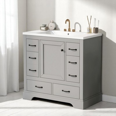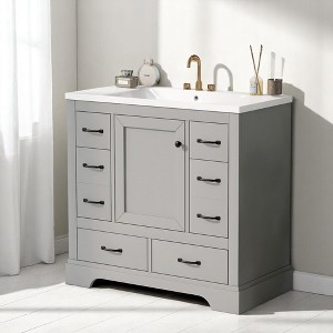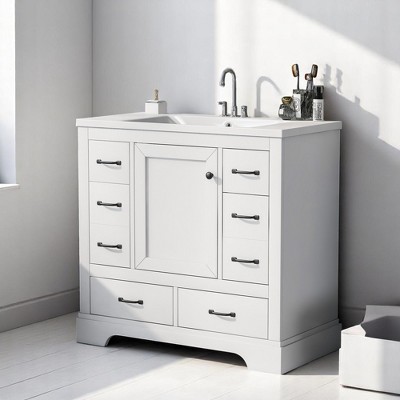 Mshliw 36" Bathroom Vanity with Ceramic Sink, Six Drawers, Adjustable Shelf, and Multi-Functional Divider - Modern Design
