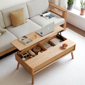 Mshliw Elevating Coffee Table 100% Solid Oak Top Plate Wood Center Table with Storage Shelf, Lift-Top and Hidden Compartments Study Desk for Study