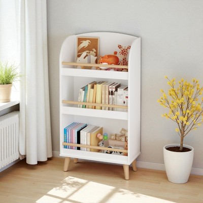 Mshliw Kids Bookshelf and Toy Storage Organizer, 4-Tier Wooden Bookcase Display Stand for Nursery, Playroom, or Kids Bedroom