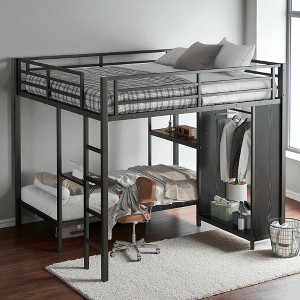 Maximize your space and functionality with this King Over Twin XL Metal Bunk Bed with Built-in Wardrobe and Foldable Desk. Designed for modern living, this all-in-one bunk bed combines a sturdy frame, a built-in workstation, and smart storage features to create a compact yet comfortable sleeping and working environment. Perfect for small bedrooms, dorms, or multi-use spaces.