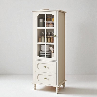 Mshliw Minimalist Buffet Cabinet with Glass Doors and 2 Drawers, Modern MDF Sideboard Storage Cupboard for Dining Room, Living Room, Hallway