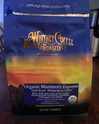 Mt. Whitney Coffee Roasters Organic Mammoth Espresso, Whole Bean Coffee, Dark Roast, 12 oz 340 g