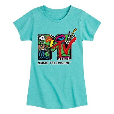 Girls' MTV Icon Collage Logo Fitted Short Sleeve Graphic T-Shirt - Turquoise - 3T