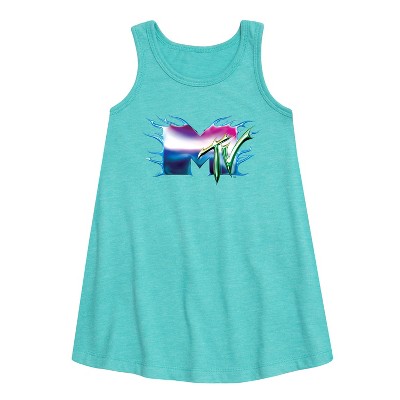 Girls' MTV Logo Retro Collage Graphic Sleeveless Aline Dress - Turquoise - 4T