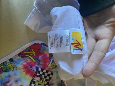 • CLASSIC CHARACTER DESIGN - This pajama set-top features the MTV logo in neon yellow, pink, and blue with the phrase "Music Television" below it. The bottoms feature an all-over print of different MTV logos against a tie-dye back.