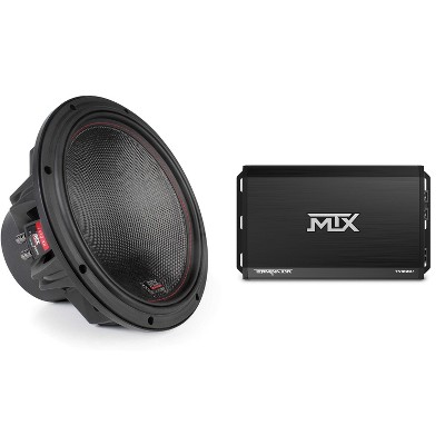 This bundle includes 1x MTX TERMINATOR 1000-Watt RMS 1Ω Mono Block Class D Amplifier and 2x MTX Audio 5515-44 55-Series 15" 400W RMS Dual 4-Ohm Subwoofer.
