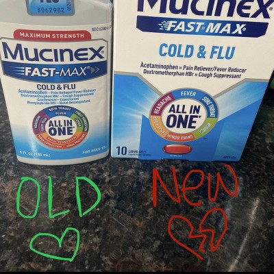Hi Val. Thank you for your feedback regarding our Mucinex® Fast-Max Cold & Flu liquid gels. We would love to learn more about your experience. When you have a chance, please call us at 1-866-529-8804 between 9:00-5:00 EST (Monday - Friday) and mention the following reference number 7648552, and we would be happy to assist you further.