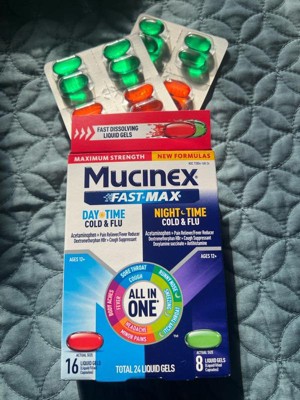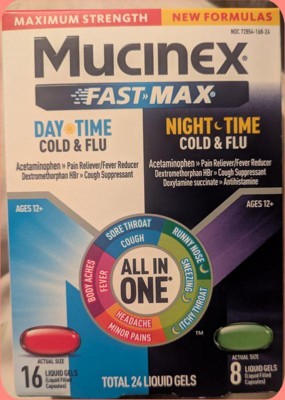 - COUGH, COLD AND FLU MEDICINES FOR ADULTS: This combo pack of Maximum Strength Mucinex Fast-Max Day Cold & Flu and Fast-Max Night Cold & Flu fast-dissolving liquid gels provides powerful multi-symptom relief for your worst cold and flu symptoms