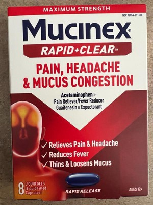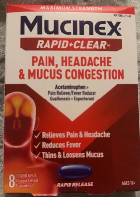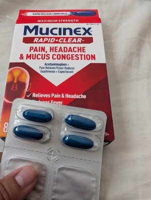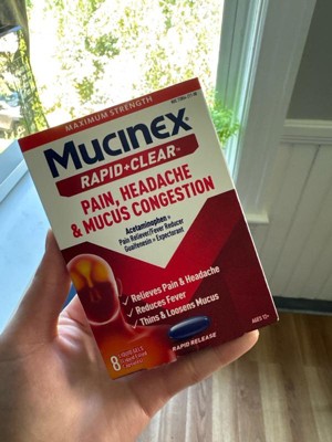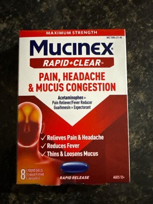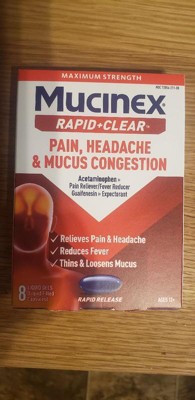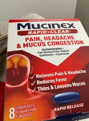 Mucinex Rapid Clear Pain Headache Mucus Congestion Liquid Gel Capsules - Acetaminophen - 8ct