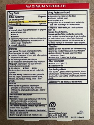 With Acetaminophen, a reliable pain reliever and fever reducer, these liquid gels provide powerful headache relief, body pain relief, and sore throat relief. Guaifenesin, a well known expectorant, targets bothersome chest congestion by thinning and loosening mucus, providing excess mucus relief.