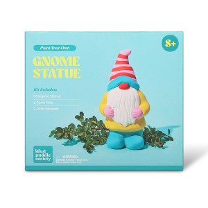 Roll up your sleeves with this Paint-Your-Own Ceramic Gnome Statue kit from Mud Puddle Society™. This paint-your-own craft kit includes a whimsical ceramic gnome-shaped garden statue, six mini paint pots (blue, green, red, pink, purple, and yellow), and two wooden paint brushes.