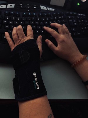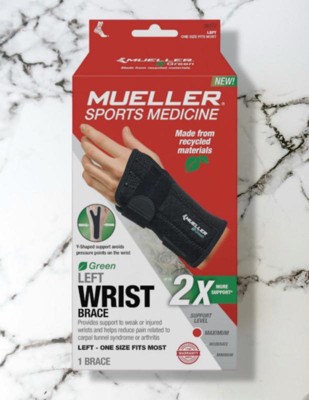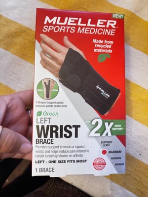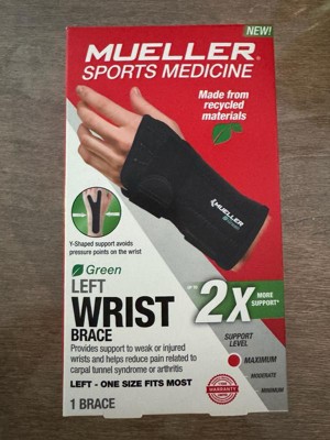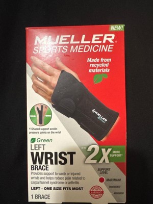 The Mueller Green Fitted Left Hand Wrist Brace is both lightweight and comfortable for all-day wear and night use. Designed to help relieve pain and swelling associated with Carpal Tunnel Syndrome. Supports weak or injured wrists while maintaining full range of movement in thumb and fingers. Made with extra comfortable padding for a very soft touch. Made with latex-free material.