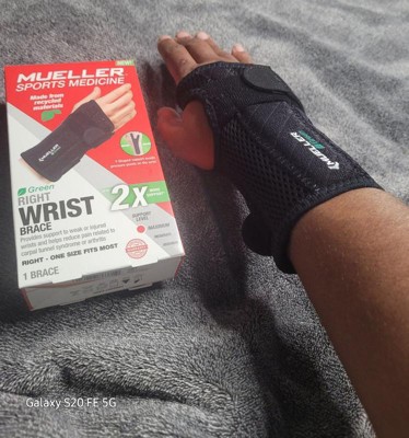 [This review was collected as part of a promotion.] The Mueller Green Fitted Wrist Brace for the right hand is comfortable, breathable, and gives excellent support for wrist pain and carpal tunnel. The sizing is accurate, and once on, it feels secure and easy to wear all day. Definitely