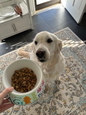 Our Belgian melon Maximus loves his food. He’ll even chew on the box just to get it open and he’llstand it as bowl and bark if it’s empty even after he’s eaten most of it already good bite size pieces for him to enjoy and very happy with the product.