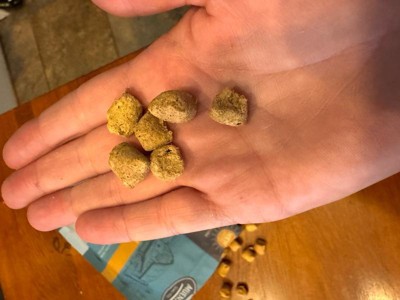 [This review was collected as part of a promotion.] Absolutely fantastic ingredients list with no complaints from any pups. I feel comfortable using these for training, given their lack of fillers. The kcal is a little high, but since it has so much protein, that is to be expected. Great product