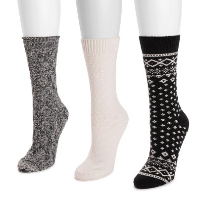 MUK LUKS Women's 4 Pack Holiday Boot Socks, Ivory Black, OS 6 - 11