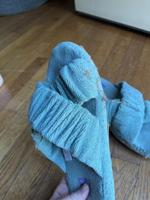 These slippers look like they are made of cotton terry, like a bath towel, but they are actually made of cheap microfiber, like a cloth you would use to clean your windows. They feel so gross on my feet, the microfiber snags on every ridge of my skin. I instantly took them off. I'll be returning them.