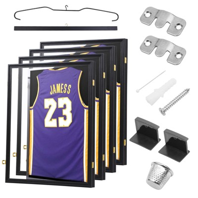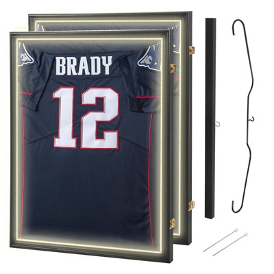 MUKE LED Sports Jersey Display Case, Lockable Shadow Box with UV-Resistant Acrylic, Wall Mount Frame for Football, Basketball, Baseball 4 Pack
